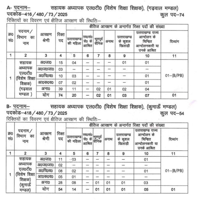 Assistant Teacher L.T. (Special Education Teacher) | Garhwal Division | 74 |